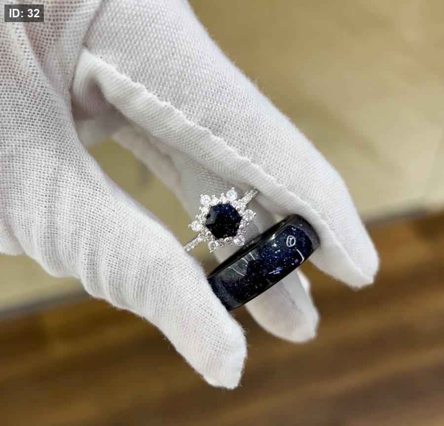 نوصي باقتنائه مع الخاتم المتناسق كما هو موضح في الصور، ليجتمعا معًا كرمز لوعدٍ مشترك تحت سماء واحدة قصة حب متوازنة بين القوة والنعومة، الليل والنور.
