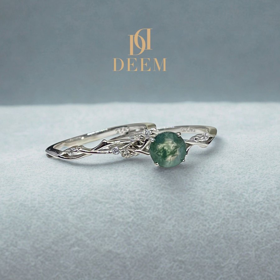 يتميز حجر العقيق الطحلبي بتشعباته الطبيعية العشوائية التي تجعله فريدًا من نوعه، مما يعني أن كل خاتم يحمل نمطًا خاصًا به. قد تختلف درجات اللون الأخضر وتوزيع التشعبات داخل الحجر من قطعة لأخرى، مما يجعلكِ تمتلكين جوهرة لا تشبه أي أخرى.